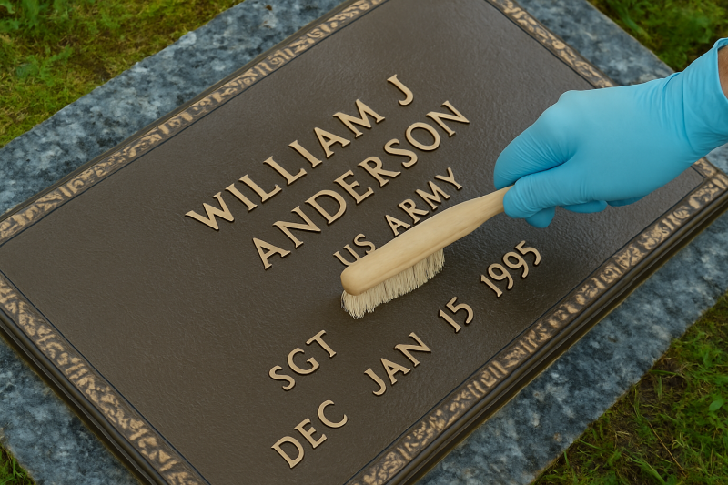 If a marker is severely corroded, cracked, or illegible, it may require more than cleaning. At that point, it’s wise to consult a professional with experience in cemetery bronze restoration. Improper handling can result in irreversible damage or violate cemetery rules.